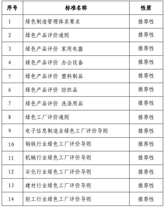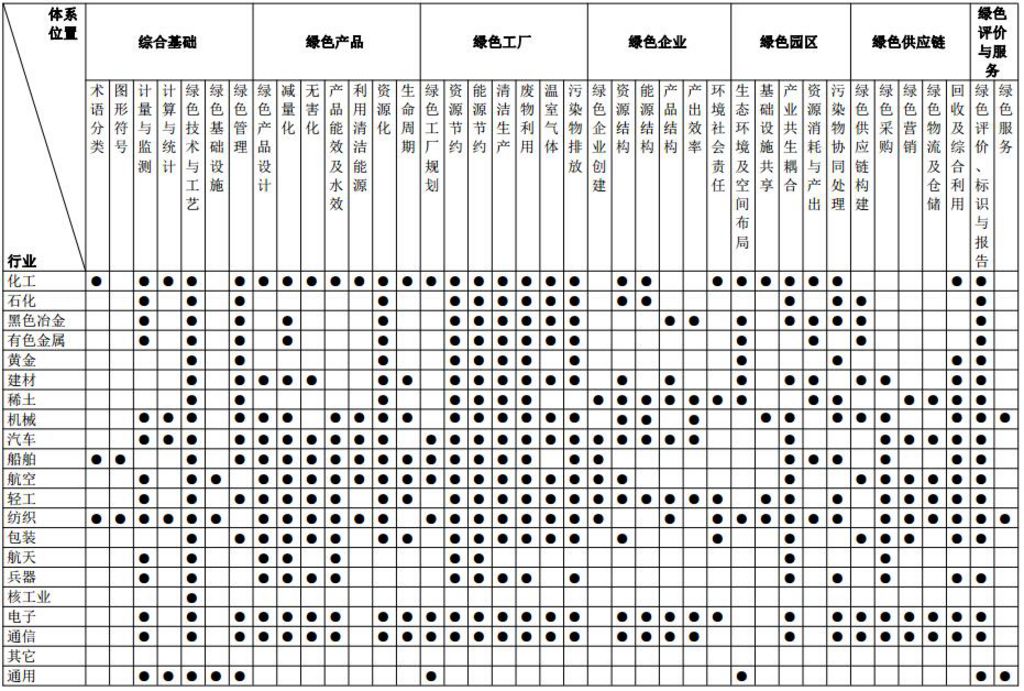 范围:主要包括绿色工厂规划、资源节约、能源节约、清洁生产、废物利用、温室气体和污染物排放等方面的标准。