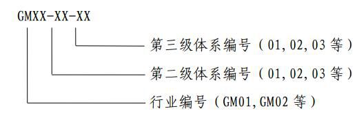 相关行业绿色制造标准体系编号由行业代码、二级体系编号及三级体系编号“XXXXXX”组成,其中第一个“XX”为行业代号,第二个“XX”是二级体系编号,第三个“XX”是三级体系编号。
