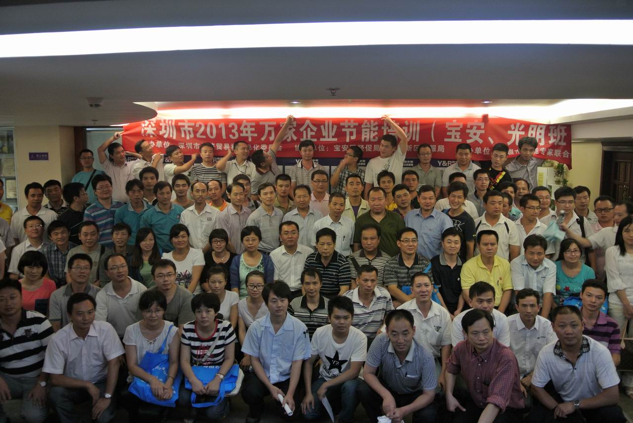 培训课现场(前排左一:市经贸信息委电力与资源综合利用处李民炬科长,左二:宝安区经促局兰洁科长)