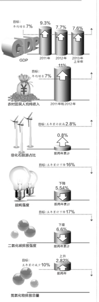 报告所附的国家“十二五”规划纲要主要指标完成情况显示,24个指标分属经济发展、科技教育、资源环境、人民生活4类,其中国内生产总值“高于预期”,徐绍史在作报告时也提到,近三年经济增速高于年均增长7%的预期目标。