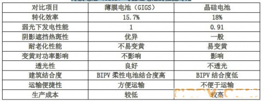 薄膜电池(GIGS)与晶硅电池的性能对比