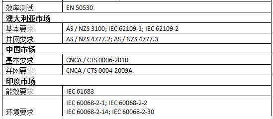 太阳能光伏并网逆变器主要使用国家的认证包括: