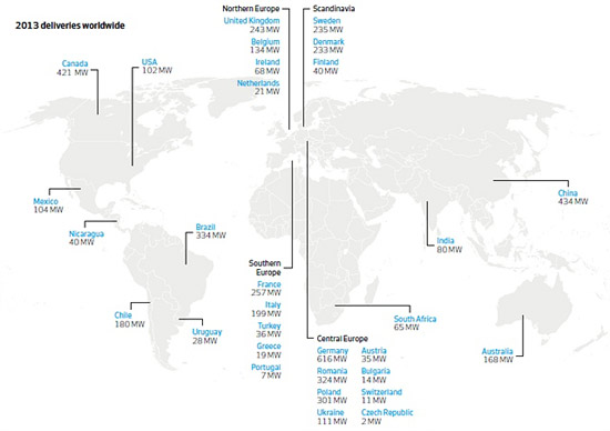 下面是维斯塔斯2013年安装分布图及订单情况,供有兴趣的朋友们参考。