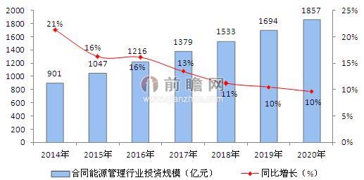 前瞻远期预测,到2020年中国合同能源管理行业投资规模将达到1857亿元,年平均增长率为14%。