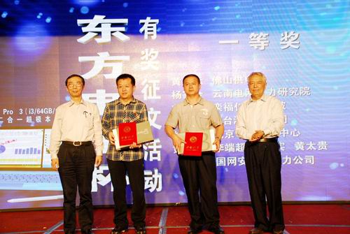 本次论坛上同期举行了2014年“东方电子杯”有奖征文颁奖典礼,共收到文章一百五十余篇,其中的56篇文章获得了大奖、一、二、三等奖。获奖征文思路清晰、观点新颖,结合产品体验分别从智能电网下的智能调度、智能配电、智能变电站、智能用电以及新能源、环保节能、物联网技术应用等多个领域给公司发展提出了创意方案。