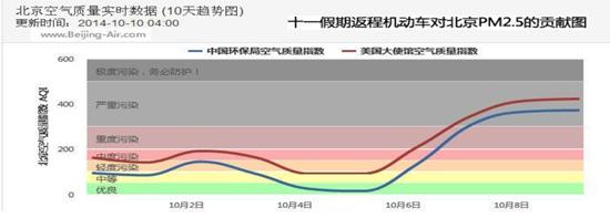 从上面这张图,我们可以看出,同样天气下的10月5日,PM2.5值居然呈现下降趋势,但在6、7日的返程高峰时PM2.5呈现暴增状态,假期结束后的8、9工作日,只比前2日有略微的增长。由此可见,机动车对PM2.5污染的贡献率远比人们想象得高。机动车尾气的大量排放在造成严重空气污染的同时也严重威胁着人类的健康。世界卫生组织已经将汽车尾气提升至“确定致癌”级别。