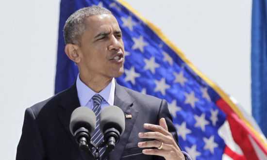 2015年5月20日,美国总统奥巴马在康涅狄格州新伦敦的美国海岸警卫队学院发表演讲,阐述气候变化的危险性。