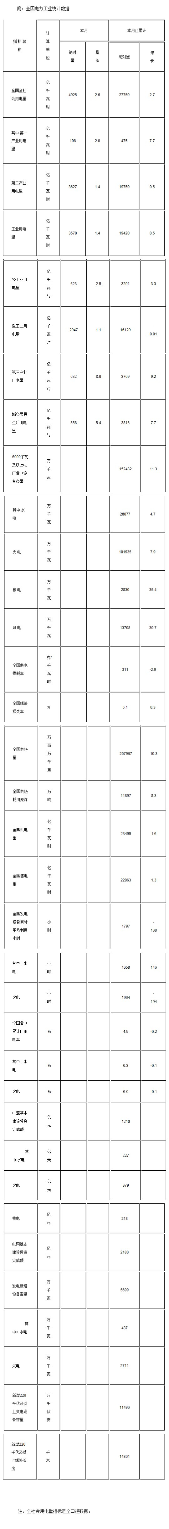 附:全国电力工业统计数据