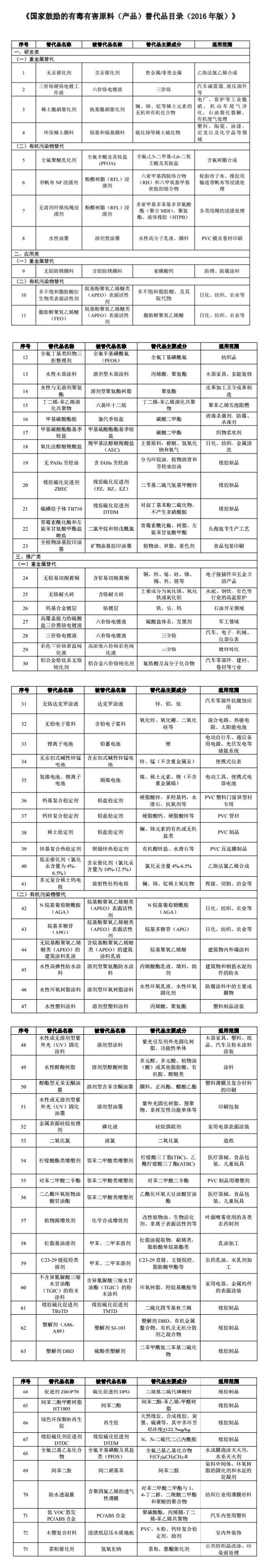 附件:国家鼓励的有毒有害原料(产品)替代品目录(2016年版)