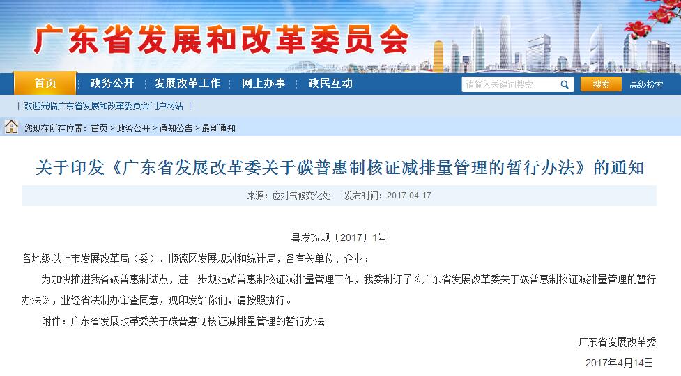 广东省发展改革委关于印发《广东省发展改革委关于碳普惠制核证减排量管理的暂行办法》的通知
