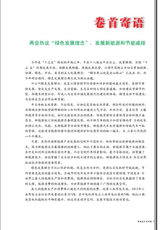 今年是“十三五”规划的开局之年,早在十八届五中全会上,就曾强调,实现“十三 五”时期发展目标,破解发展难题,厚植发展优势,必须牢固树立并切实贯彻创新、协调、绿色、开放、共享的五大发展理念;“绿水青山就是金山银山”已成共 识,而今年两会期间,绿色发展理念再次成为热议话题。