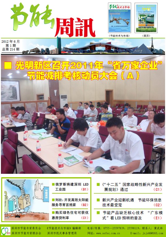 深圳市节能专家联合会、《节能技术与市场》编辑部编制的《节能周讯》(PDF电子周报),汇聚每周最新的深圳、国内和国际的节能行业新闻、行业资讯、节能技术、节能知识等,每期免费发送给相关政府部门、行业协会以及数千家节能企业。