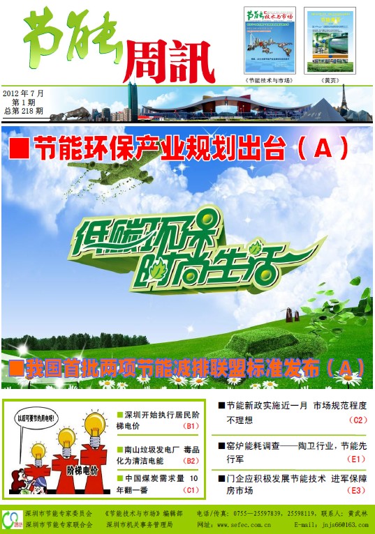 《节能周讯》2012年7月第1期,总第218期PDF版(点击如下数字图标在线阅读,打开约需等待30秒,或右键“目标另存为”下载到电脑中阅读;如果不能正常打开,建议您的电脑安装PDF阅览器):