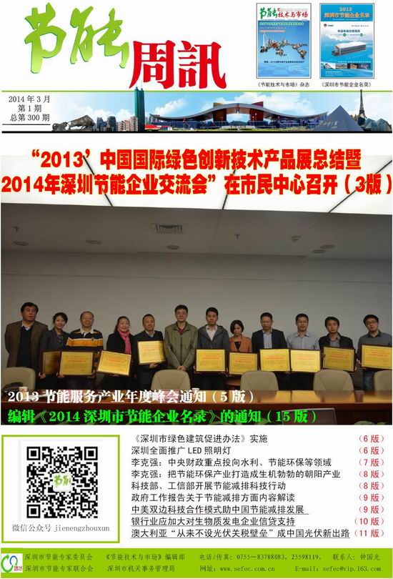 深圳市节能专家联合会、《节能技术与市场》编辑部编制的《节能周讯》(PDF电子周报),汇聚每周最新的深圳、国内和国际的节能行业新闻、行业资讯、节能技术、节能知识等,每期免费发送给相关政府部门、行业协会以及数千家节能企业。