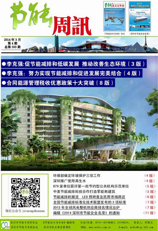 深圳市节能专家联合会、《节能技术与市场》编辑部编制的《节能周讯》(PDF电子周报),汇聚每周最新的深圳、国内和国际的节能行业新闻、行业资讯、节能技术、节能知识等,每期免费发送给相关政府部门、行业协会以及数千家节能企业。