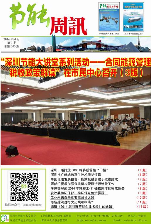 深圳市节能专家联合会、《节能技术与市场》编辑部编制的《节能周讯》(PDF电子周报),汇聚每周最新的深圳、国内和国际的节能行业新闻、行业资讯、节能技术、节能知识等,每期免费发送给相关政府部门、行业协会以及数千家节能企业。