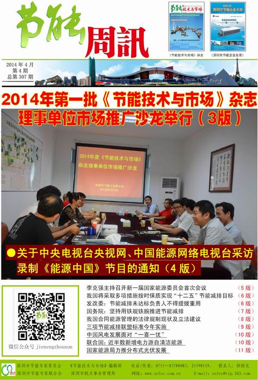 深圳市节能专家联合会、《节能技术与市场》编辑部编制的《节能周讯》(PDF电子周报),汇聚每周最新的深圳、国内和国际的节能行业新闻、行业资讯、节能技术、节能知识等,每期免费发送给相关政府部门、行业协会以及数千家节能企业。