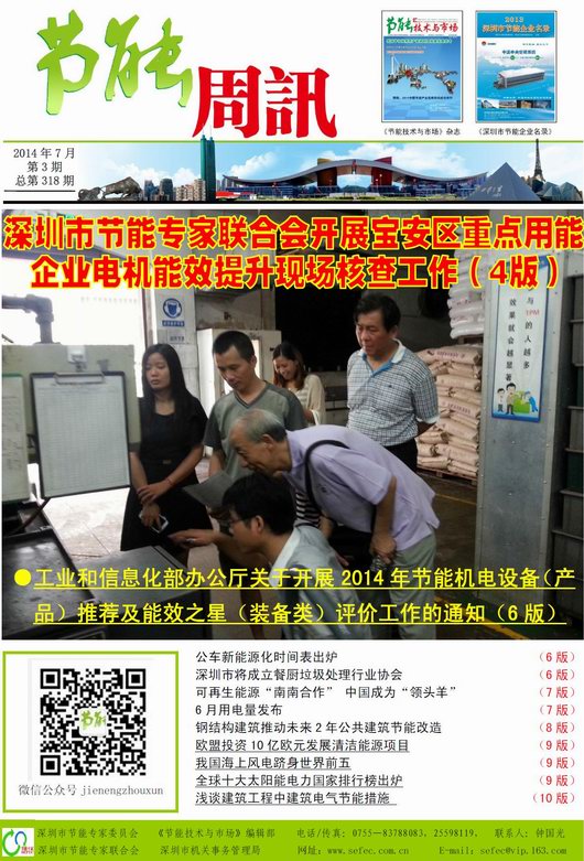 深圳市节能专家联合会、《节能技术与市场》编辑部编制的《节能周讯》(PDF电子周报),汇聚每周最新的深圳、国内和国际的节能行业新闻、行业资讯、节能技术、节能知识等,每期免费发送给相关政府部门、行业协会以及数千家节能企业。