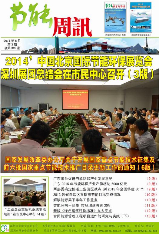 深圳市节能专家联合会、《节能技术与市场》编辑部编制的《节能周讯》(PDF电子周报),汇聚每周最新的深圳、国内和国际的节能行业新闻、行业资讯、节能技术、节能知识等,每期免费发送给相关政府部门、行业协会以及数千家节能企业。