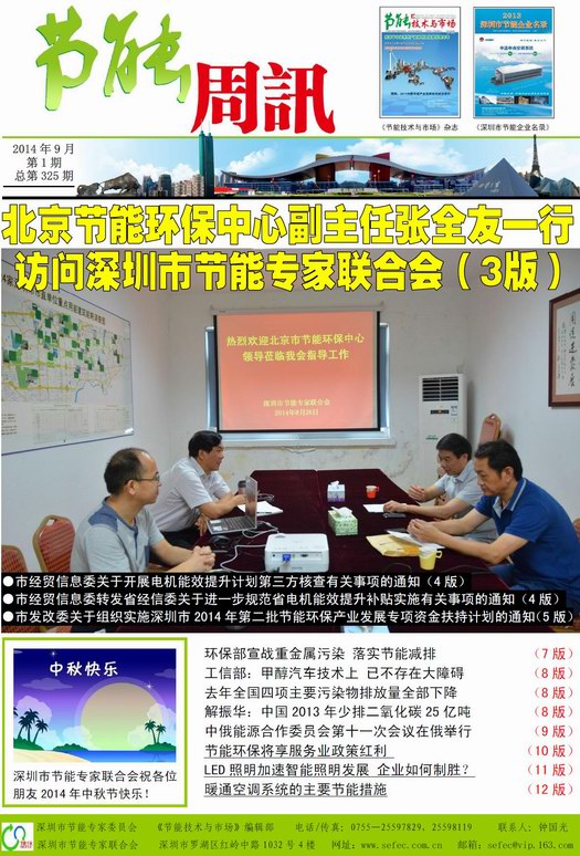 《节能周讯》2014年9月第1期,总第325期PDF版(点击如下数字图标在线阅读,打开约需等待30秒,或右键“目标另存为”下载到电脑中阅读;如果不能正常打开,建议您的电脑安装PDF阅览器):