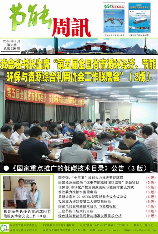 《节能周讯》2014年9月第2期,总第326期PDF版(点击如下数字图标在线阅读,打开约需等待30秒,或右键“目标另存为”下载到电脑中阅读;如果不能正常打开,建议您的电脑安装PDF阅览器):