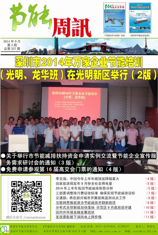 深圳市节能专家联合会、《节能技术与市场》编辑部编制的《节能周讯》(PDF电子周报),汇聚每周最新的深圳、国内和国际的节能行业新闻、行业资讯、节能技术、节能知识等,每期免费发送给相关政府部门、行业协会以及数千家节能企业。