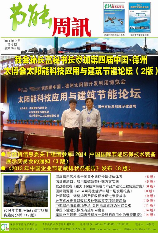 《节能周讯》2014年9月第4期,总第328期PDF版(点击如下数字图标在线阅读,打开约需等待30秒,或右键“目标另存为”下载到电脑中阅读;如果不能正常打开,建议您的电脑安装PDF阅览器):