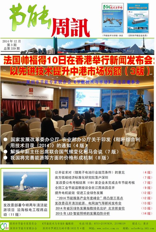 深圳市节能专家联合会、《节能技术与市场》编辑部编制的《节能周讯》(PDF电子周报),汇聚每周最新的深圳、国内和国际的节能行业新闻、行业资讯、节能技术、节能知识等,每期免费发送给相关政府部门、行业协会以及数千家节能企业。