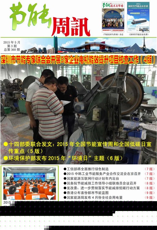 深圳市节能专家联合会、《节能技术与市场》编辑部编制的《节能周讯》(PDF电子周报),汇聚每周最新的深圳、国内和国际的节能行业新闻、行业资讯、节能技术、节能知识等,每期免费发送给相关政府部门、行业协会以及数千家节能企业。