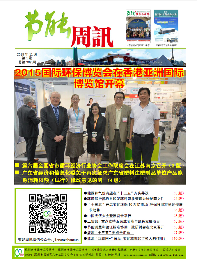 深圳市节能专家联合会、《节能技术与市场》编辑部编制的《节能周讯》(PDF电子周报),汇聚每周最新的深圳、国内和国际的节能行业新闻、行业资讯、节能技术、节能知识等,每期免费发送给相关政府部门、行业协会以及数千家企业和用能单位。