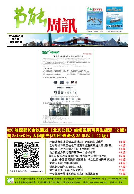 深圳市节能专家联合会、《节能技术与市场》编辑部编制的《节能周讯》(PDF电子周报),汇聚每周最新的深圳、国内和国际的节能行业新闻、行业资讯、节能技术、节能知识等,每期免费发送给相关政府部门、行业协会以及数千家企业和用能单位。