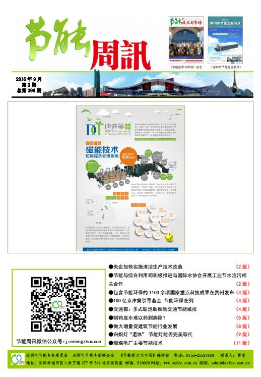深圳市节能专家联合会、《节能技术与市场》编辑部编制的《节能周讯》(PDF电子周报),汇聚每周最新的深圳、国内和国际的节能行业新闻、行业资讯、节能技术、节能知识等,每期免费发送给相关政府部门、行业协会以及数千家企业和用能单位。