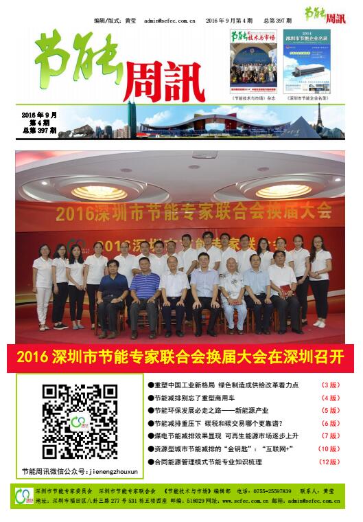深圳市节能专家联合会、《节能技术与市场》编辑部编制的《节能周讯》(PDF电子周报),汇聚每周最新的深圳、国内和国际的节能行业新闻、行业资讯、节能技术、节能知识等,每期免费发送给相关政府部门、行业协会以及数千家企业和用能单位。