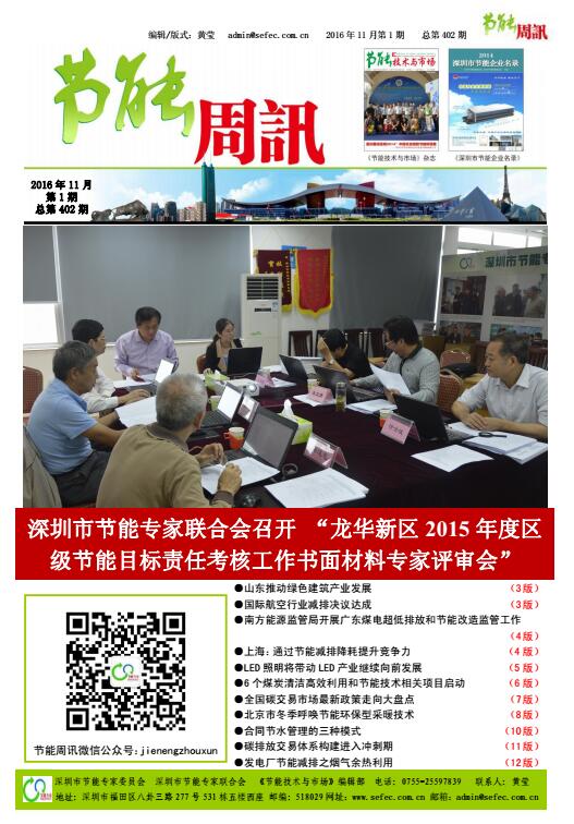 深圳市节能专家联合会、《节能技术与市场》编辑部编制的《节能周讯》(PDF电子周报),汇聚每周最新的深圳、国内和国际的节能行业新闻、行业资讯、节能技术、节能知识等,每期免费发送给相关政府部门、行业协会以及数千家企业和用能单位。