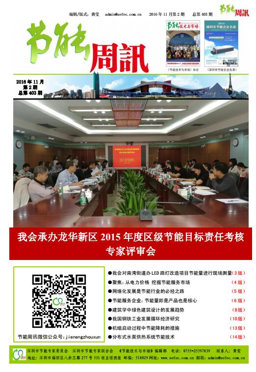 深圳市节能专家联合会、《节能技术与市场》编辑部编制的《节能周讯》(PDF电子周报),汇聚每周最新的深圳、国内和国际的节能行业新闻、行业资讯、节能技术、节能知识等,每期免费发送给相关政府部门、行业协会以及数千家企业和用能单位。