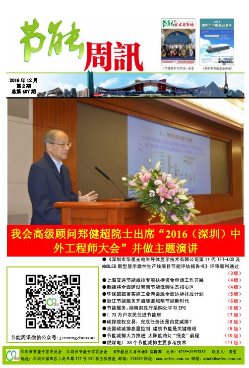 深圳市节能专家联合会、《节能技术与市场》编辑部编制的《节能周讯》(PDF电子周报),汇聚每周最新的深圳、国内和国际的节能行业新闻、行业资讯、节能技术、节能知识等,每期免费发送给相关政府部门、行业协会以及数千家企业和用能单位。