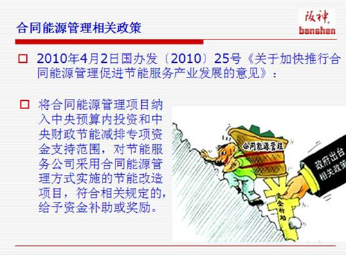 政府出台相关政策推进合同能源管理:中央财政安排专项资金奖励支持合同能源管理项目。地方出台相应配套奖励资金。