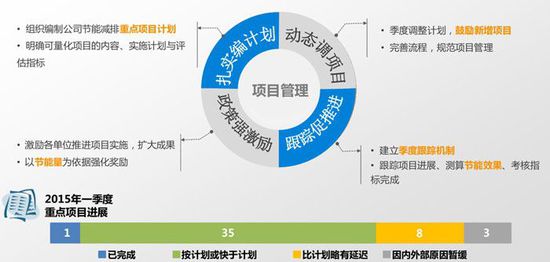 节能减排工作的关键不在于机制设计,也不在于技术创新,而在项目扎扎实实不打折扣地落地实施、见到实效。为此,厦航明确了以节能项目为抓手,“推项目、见实效”的管理思路,围绕节能减排项目做到“年初有计划、年中有跟踪、年末有考核”,实现以计划统筹、以绩效引导、以管理推进的全闭环管理。