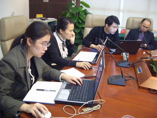 深圳市节能专家联合会技术服务中心工作人员在盐田区政府大楼4楼会议室整理能耗数据