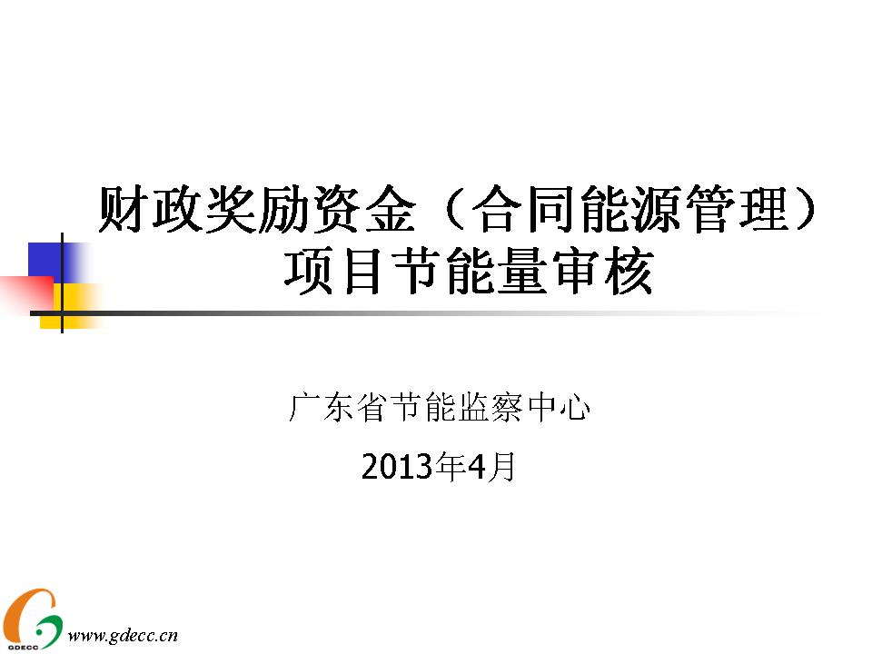 此为广东省节能监察中心陈健主任 《财政奖励资金(合同能源管理)项目节能量审核》演讲材料: