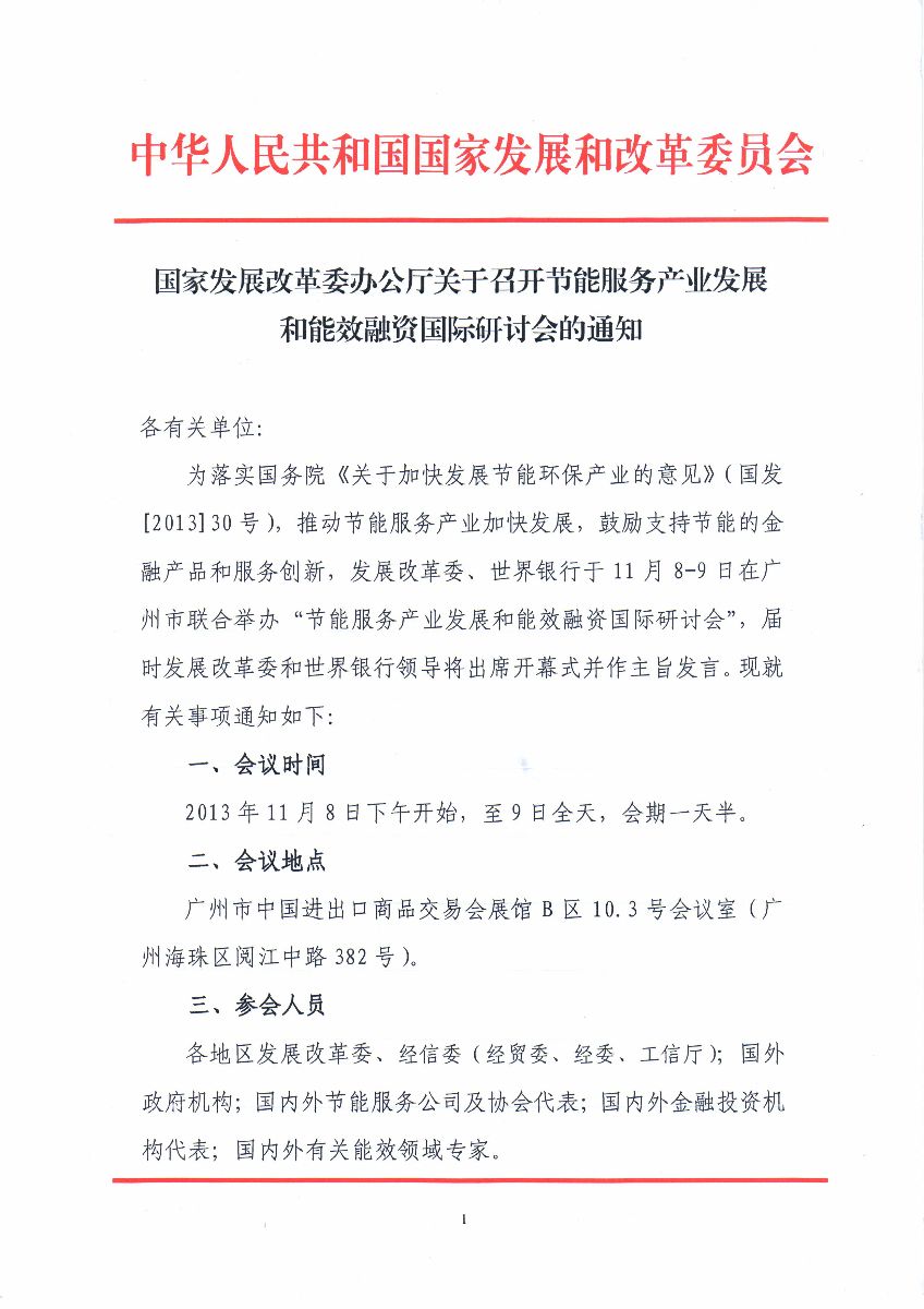 关于召开节能服务产业发展和能效融资国际研讨会通知