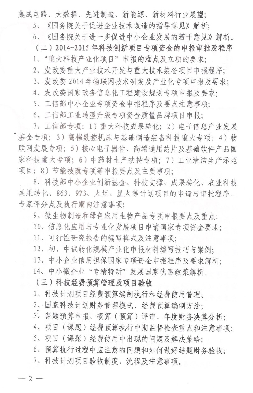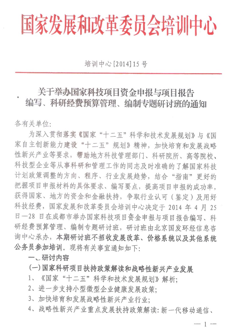 关于举办国家科技项目资金申报与项目报告编写研讨班的通知