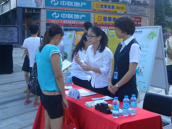 工作人员介绍报名情况