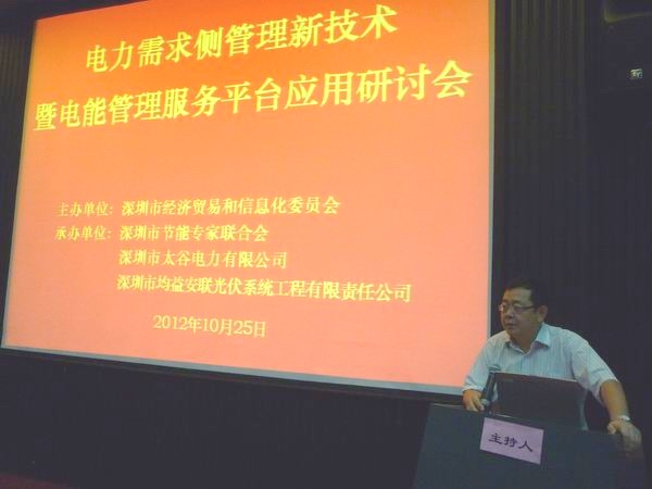2012年10月25日,由深圳市经济贸易和信息化委员会主办,深圳市节能专家联合会、深圳市太谷电力有限公司和深圳市均益安联光伏系统工程有限公司承办的“电力需求侧管理新技术暨电能管理服务平台应用研讨会”,在市民中心B区市工业展览馆三楼会议室召开。