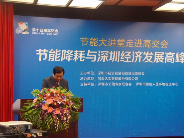 2012 年11 月19 日,由深圳市经济贸易和信息化委员会主办、深圳达实智能股份有限公司承办、深圳市节能专家联合会支持举办的第十四届高交会“节能降耗与深圳经济发展高峰论坛”,在深圳会展中心召开。该论坛是深圳市经济贸易和信息化委员会主办的“节能大讲堂”系列活动之一,亦是该活动第一次走进高交会。