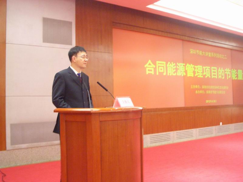 4月8日,由深圳市经济贸易和信息化委员会主办、深圳市节能专家联合会承办的“深圳节能大讲坛系列活动之二——合同能源管理项目的节能量核算”会议在市民中心B区多功能厅召开,全面探讨合同能源管理项目节能量的审核,确保我市工商业“十二五”节能规划的顺利实施。会议由深圳市经济贸易和信息化委员会电力与资源综合利用处袁晓方处长主持,深圳市经济贸易和信息化委员会副主任贾兴东出席会议并讲话。