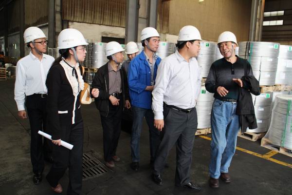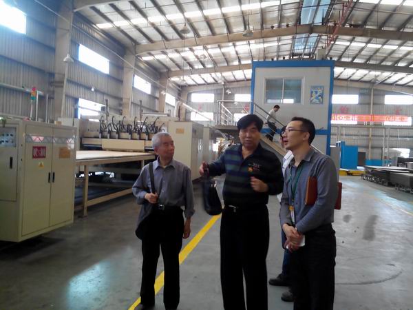 专家在美盈森公司实地查看现场(左一:邹道忠,左二:王占奎)