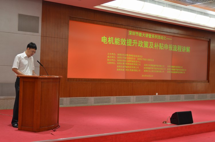 10月21日下午,由深圳市经济贸易和信息化委员会主办,深圳市节能专家联合会承办的“2014年深圳市节能大讲堂系列活动——电机能效提升政策及补贴申报流程讲解”在市民中心B区多功能厅召开。深圳市绿创人居环境促进中心、深圳市新环能科技有限公司、深圳市奥宇控制系统有限公司、深圳百时得能源环保有限公司、深圳市康灿科技有限公司、深圳市华旗源节能科技有限公司、深圳国能环保节能科技有限公司、深圳市拓远能源科技有限公司、深圳市新兰再生资源有限公司、深圳市凡人再生资源有限公司等10家单位,对本次节能大讲堂活动的举行参与了协办和支持。