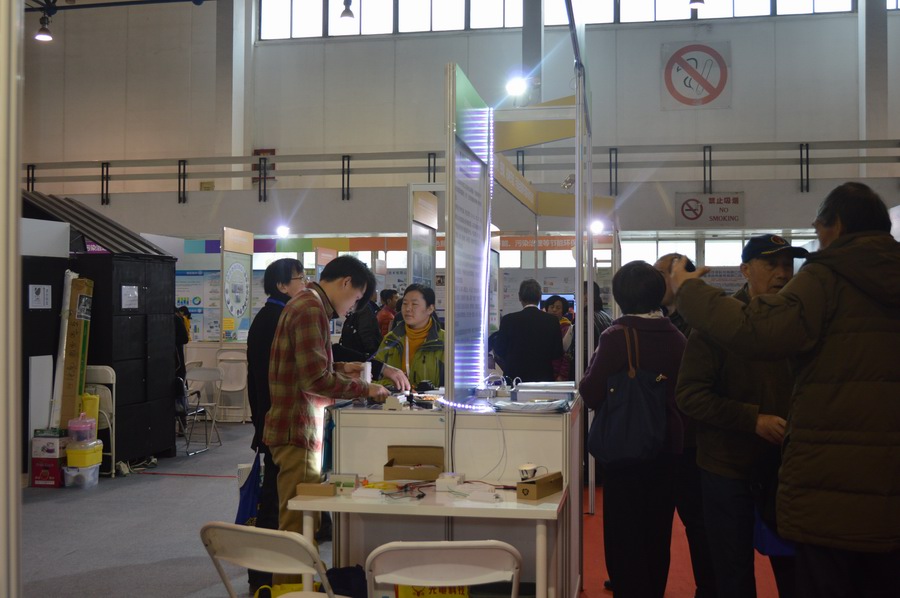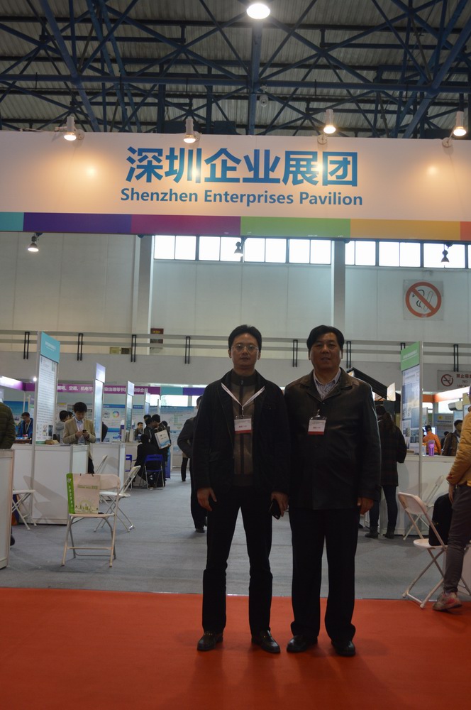 富士康科技集团节能技术发展委副总干事沈宏德(左)参观深圳展团
