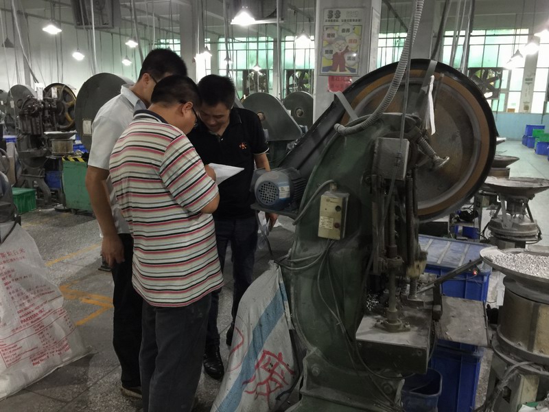 核查人员现场检查安其利电子元件(深圳)有限公司电机改造情况